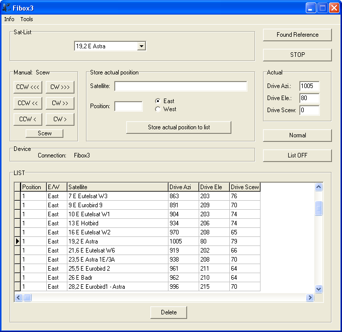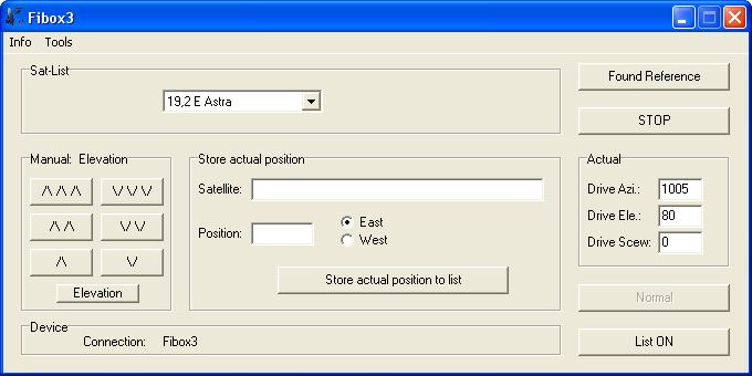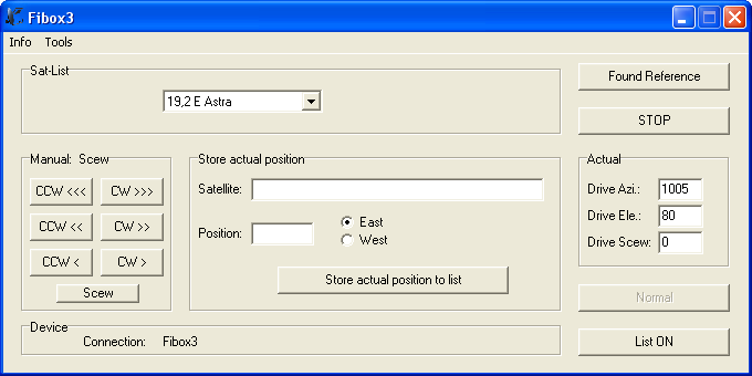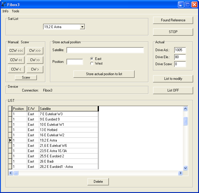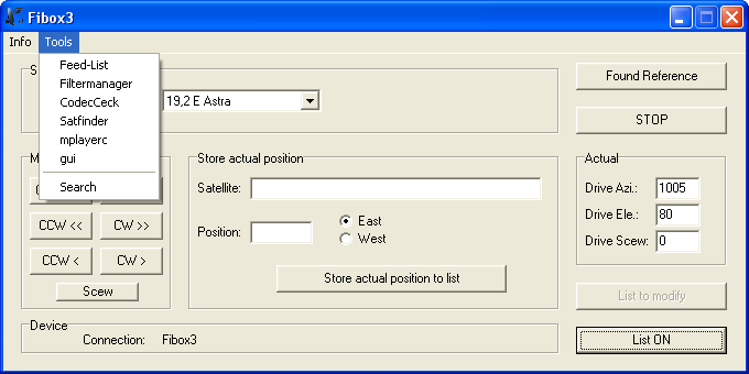 This gives a full control over the dish. The Fibo-Box V3 is controlled by PC. There was much development on the Windows software to make it more