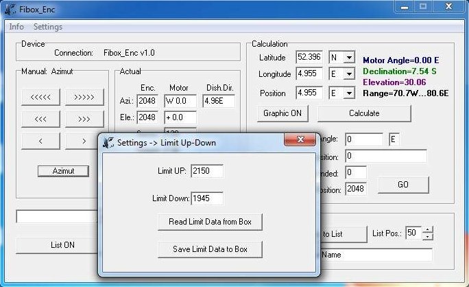 There is more to tell about this version of the Fibo-Box. The Fibo-Box V4 stores the satellite positions in the Fibo-Box V4 itself. Motor limits